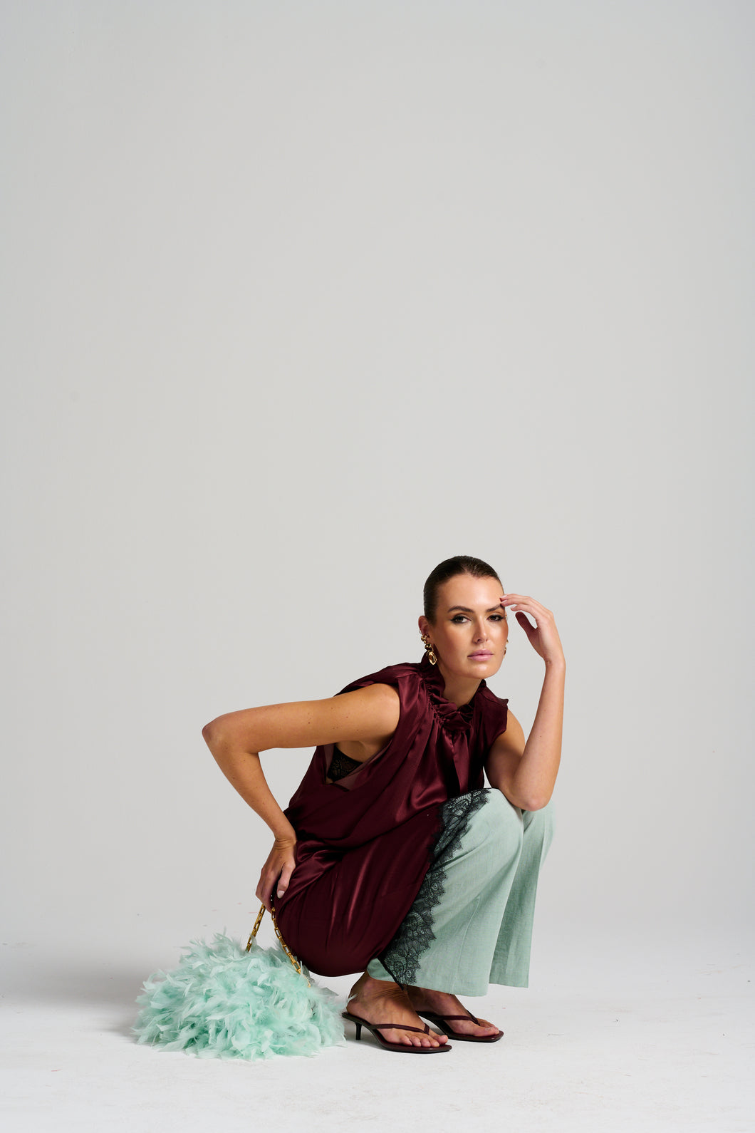 Wear this glam top back with our silk skirts or effortless tailored pants - match back for full colour drenching or contrast any which way as all colours work back effortlessy.